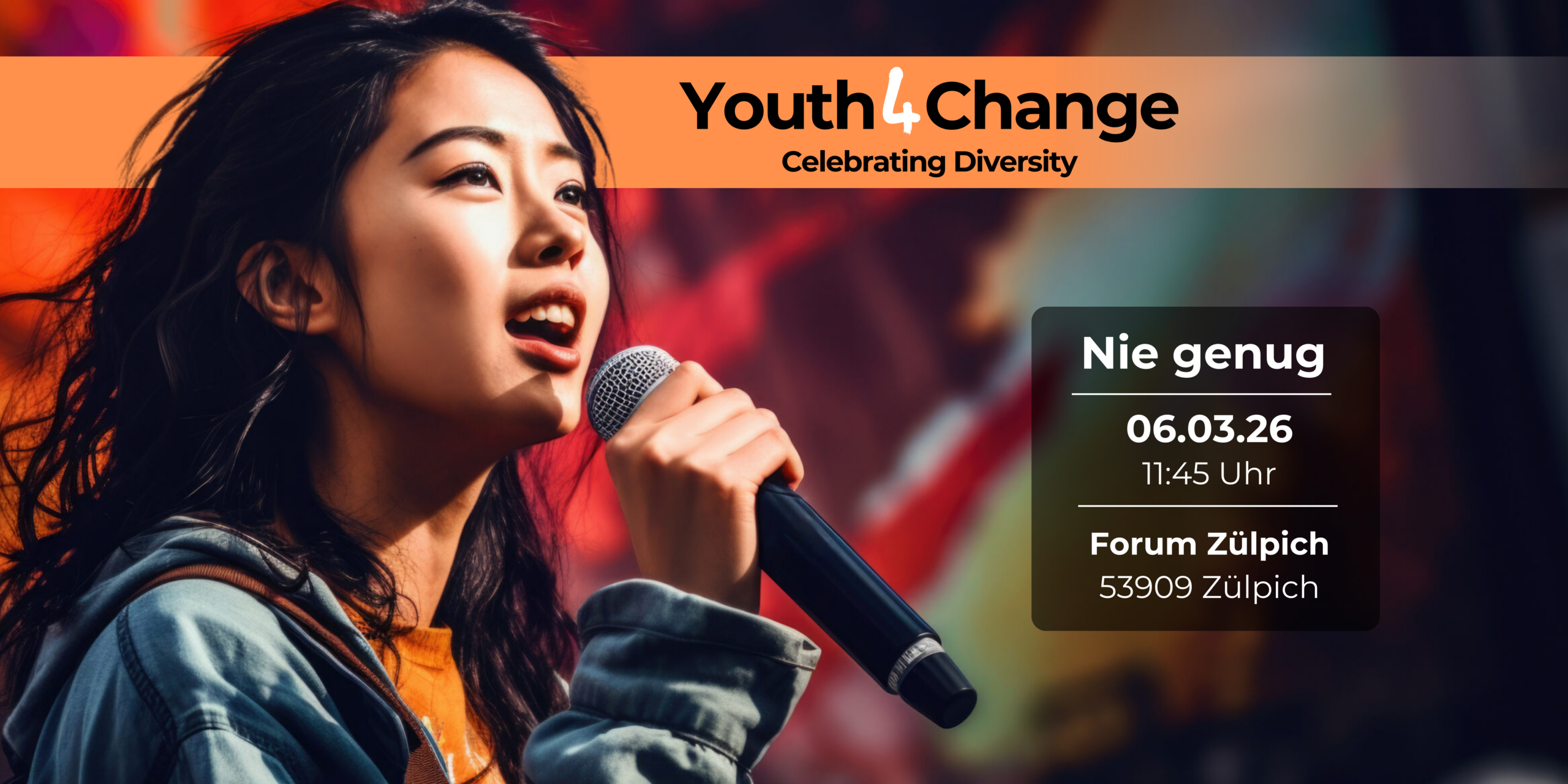 Diesen Fragen gehen Schüler*innen der Gemeinschaftshauptschule Zülpich im Rahmen des Projekts Youth4Change – Celebrating Diversity nach. Gemeinsam mit dem Verein music4everybody! e.V. zeigen sie in einer eindrucksvollen Abschlussperformance, wie junge Menschen gesellschaftliche Missstände wahrnehmen – und was sie ihnen entgegensetzen.